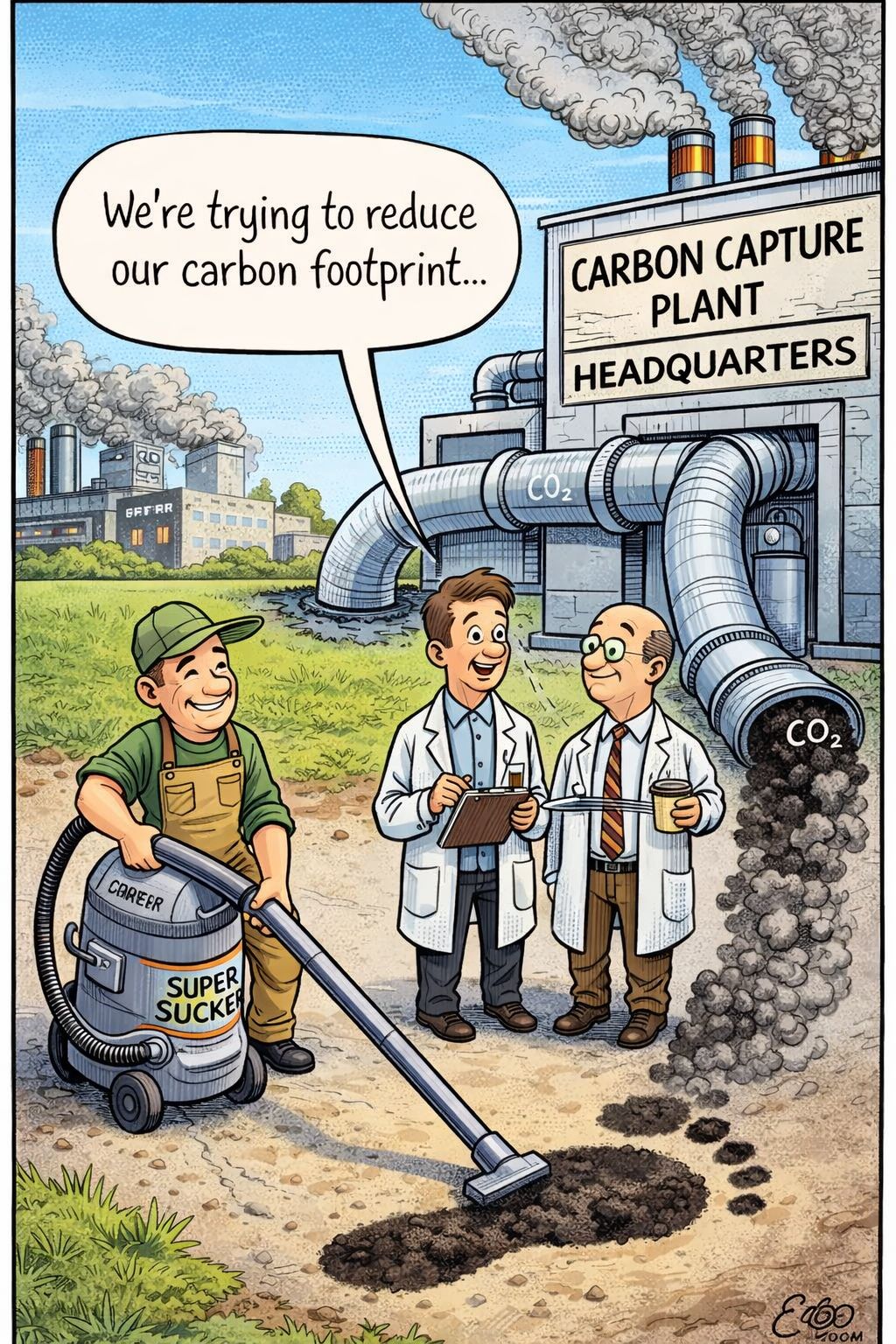 Can we fix climate change by literally vacuuming up our “carbon footprint,” mocking our love for easy, magical solutions?