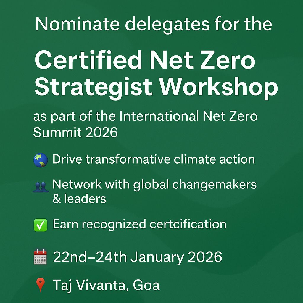 We’re thrilled to open nominations for the International Net Zero Awards 2026, celebrating trailblazers driving innovation, accountability, and impact in the global Net Zero transition. 🏆 Hosted at Taj Vivanta, Goa (22–24 Jan 2026) during the International Net Zero Summit 2026, this is your moment to shine among world leaders, policymakers, and pioneers shaping a sustainable future.