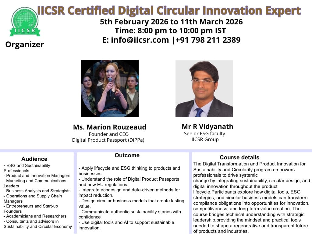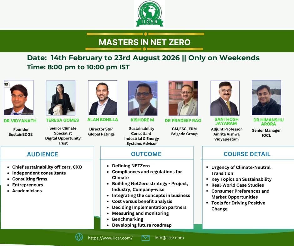 The International Institute of Corporate Sustainability and Responsibility (IICSR) is a globally recognized institution dedicated to advancing Sustainability, CSR, ESG, and Responsible Business Practices through education, research, and training. With 10+ years of impact, IICSR has empowered professionals worldwide via academic programs, corporate trainings, global dialogues, and policy-driven research, in collaboration with corporates, governments, and universities.